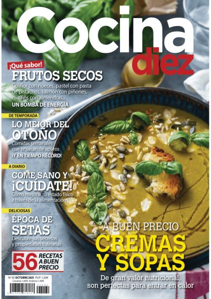 La cocina rica y sana también tiene su revista. Disfruta ya en tu tablet de la edición digital de la revista Cocina Diez, con los mismos contenidos que la edición impresa y los beneficios del formato digital. Podrás disfrutar, de una forma sencilla y rápida, de prácticas recetas y trucos de cocina para todos aquellos que disfrutan con la cocina. Todas las recetas, para todos los gustos, para la mujer de hoy, con un lenguaje claro y un atractivo diseño.